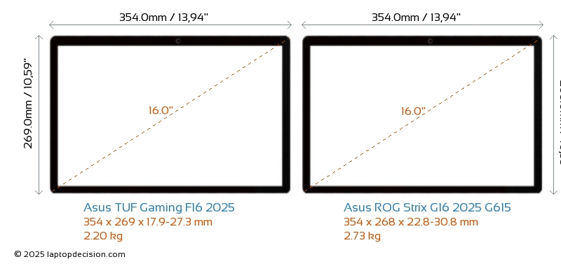 USBBoth TUF Gaming F16 2025 and ROG Strix G16 2025 G615 feature 3x USB 3.2 USB-A ports.Both TUF Gaming F16 2025 and ROG Strix G16 2025 G615 have USB Type-C ports. TUF Gaming F16 2025 has 2x USB 3.2 USB Type-C ports, while ROG Strix G16 2025 G615 has 2x USB 4.0 USB Type-C ports.