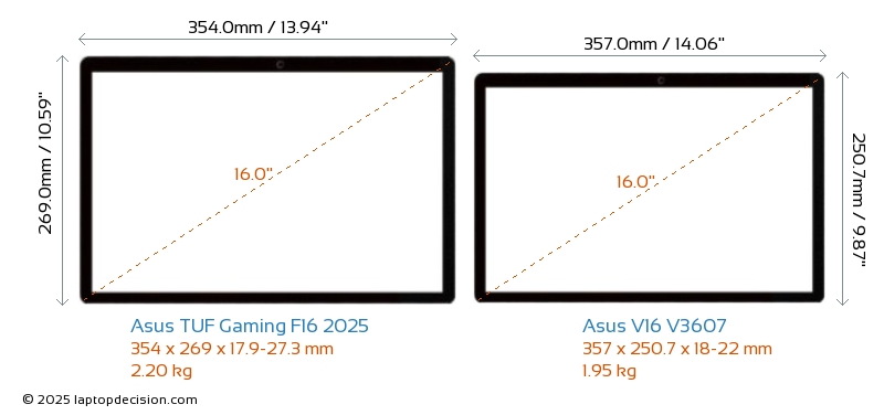 USBBoth TUF Gaming F16 2025 and V16 V3607 have USB-A ports. TUF Gaming F16 2025 has 3x USB 3.2 USB-A ports, while V16 V3607 has 2x USB 3.2 USB-A ports.Both TUF Gaming F16 2025 and V16 V3607 have USB Type-C ports. TUF Gaming F16 2025 has 2x USB 3.2 USB Type-C ports, while V16 V3607 has 1x USB 3.2 USB Type-C ports.