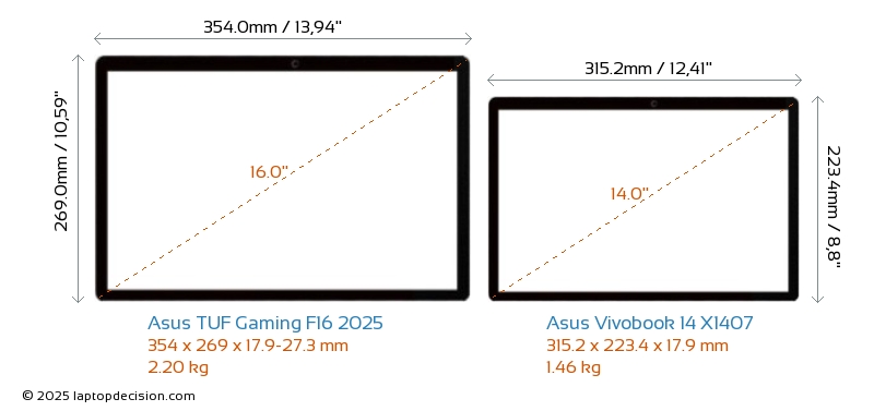 Thunderbolt TUF Gaming F16 2025 is equipped with Thunderbolt 4 port. Vivobook 14 X1407 does not have Thunderbolt port.