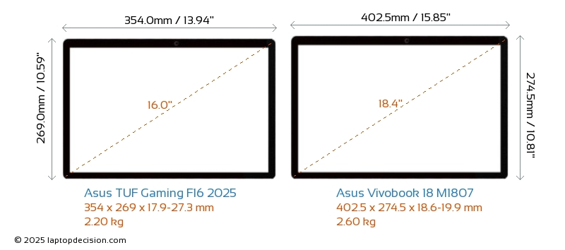 HDMIBoth TUF Gaming F16 2025 and Vivobook 18 M1807 feature an HDMI port (1x HDMI 2.1) for connecting to external monitors.