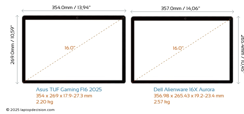 Audio JackBoth TUF Gaming F16 2025 and Alienware 16X Aurora are equipped with a 3.5mm Audio Jack, providing seamless connection to headphones and speakers.