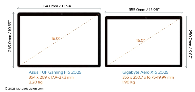 USBBoth TUF Gaming F16 2025 and Aero X16 2025 feature 3x USB 3.2 USB-A ports.Both TUF Gaming F16 2025 and Aero X16 2025 have USB Type-C ports. TUF Gaming F16 2025 has 2x USB 3.2 USB Type-C ports, while Aero X16 2025 has 1x USB 4.0 USB Type-C ports.