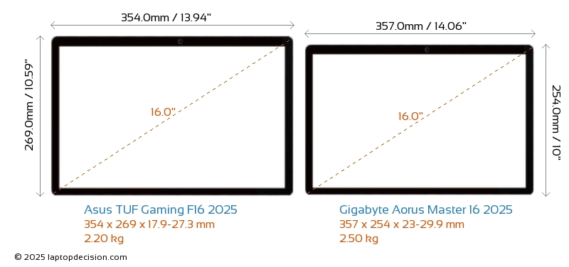 Wifi Aorus Master 16 2025 features a more advanced Wi-Fi standard v7, providing faster and more reliable wireless connections compared to TUF Gaming F16 2025 (v6E).