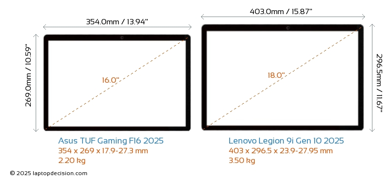 USBBoth TUF Gaming F16 2025 and Legion 9i Gen 10 2025 feature 3x USB 3.2 USB-A ports.Both TUF Gaming F16 2025 and Legion 9i Gen 10 2025 have USB Type-C ports. TUF Gaming F16 2025 has 2x USB 3.2 USB Type-C ports, while Legion 9i Gen 10 2025 has 3x USB 4.0 USB Type-C ports.