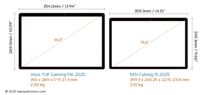 Thunderbolt TUF Gaming F16 2025 is equipped with Thunderbolt 4 port. Cyborg 15 2025 does not have Thunderbolt port.