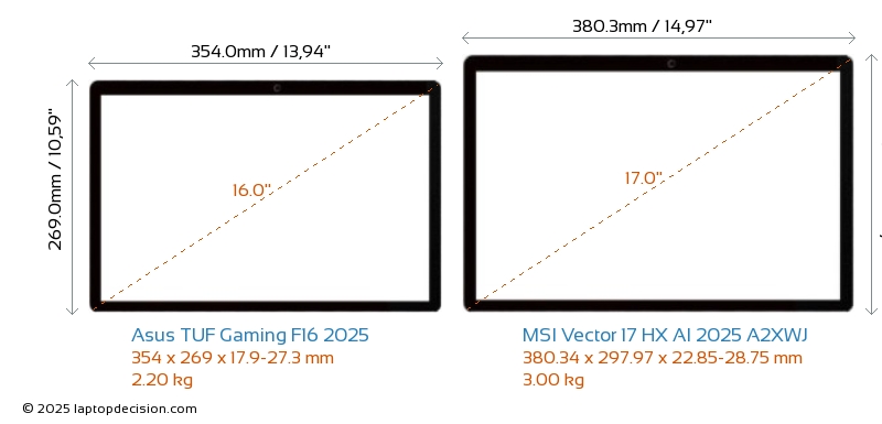 Wifi Vector 17 HX AI 2025 A2XWJ features a more advanced Wi-Fi standard v7, providing faster and more reliable wireless connections compared to TUF Gaming F16 2025 (v6E).
