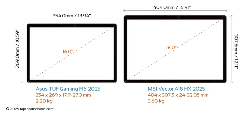 Wifi Vector A18 HX 2025 features a more advanced Wi-Fi standard v7, providing faster and more reliable wireless connections compared to TUF Gaming F16 2025 (v6E).