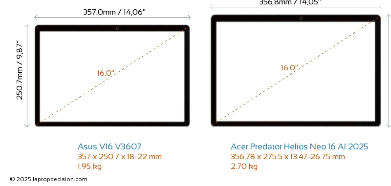 HDMIBoth V16 V3607 and Predator Helios Neo 16 AI 2025 feature an HDMI port (1x HDMI 2.1) for connecting to external monitors.