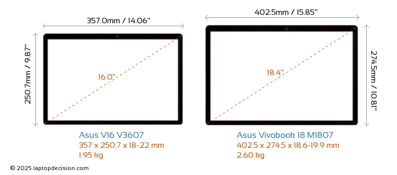 HDMIBoth V16 V3607 and Vivobook 18 M1807 feature an HDMI port (1x HDMI 2.1) for connecting to external monitors.