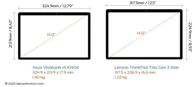 USBBoth Vivobook 14 X1404 and ThinkPad T14s Gen 3 Intel have USB-A ports. Vivobook 14 X1404 has 3x USB 3.2 USB-A ports, while ThinkPad T14s Gen 3 Intel has 1x USB 3.2 USB-A ports.Both Vivobook 14 X1404 and ThinkPad T14s Gen 3 Intel have USB Type-C ports. Vivobook 14 X1404 has 1x USB 3.2 USB Type-C ports, while ThinkPad T14s Gen 3 Intel has 2x USB 4.0 USB Type-C ports.
