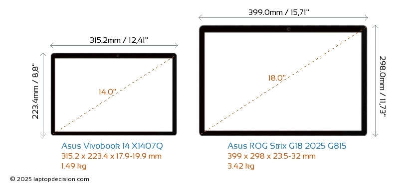 HDMIBoth Vivobook 14 X1407Q and ROG Strix G18 2025 G815 feature an HDMI port (1x HDMI 2.1) for connecting to external monitors.