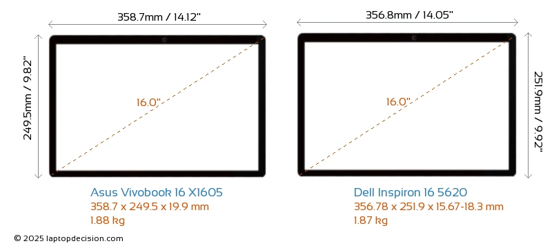 HDMIBoth Vivobook 16 X1605 and Inspiron 16 5620 feature an HDMI port (1x HDMI 1.4) for connecting to external monitors.