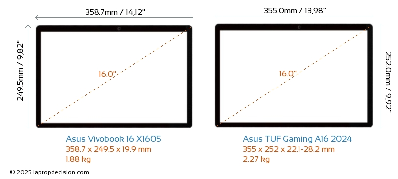 HDMIBoth Vivobook 16 X1605 and TUF Gaming A16 2024 feature an HDMI port. Vivobook 16 X1605 offers 1x HDMI 1.4, while TUF Gaming A16 2024 offers 1x HDMI 2.1.