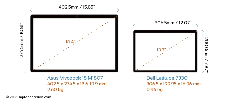 ThunderboltLatitude 7330 is equipped with Thunderbolt 4 port. Vivobook 18 M1807 does not have Thunderbolt port.