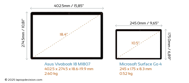 Audio JackBoth Vivobook 18 M1807 and Surface Go 4 are equipped with a 3.5mm Audio Jack, providing seamless connection to headphones and speakers.