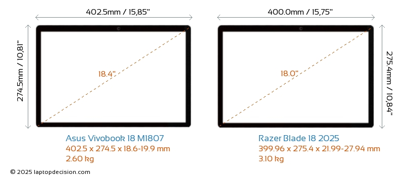 HDMIBoth Vivobook 18 M1807 and Blade 18 2025 feature an HDMI port (1x HDMI 2.1) for connecting to external monitors.