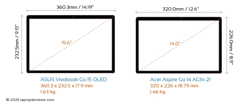 USBBoth Vivobook Go 15 OLED and Aspire Go 14 AG14-21 feature 2x USB 3.2 USB-A ports.Both Vivobook Go 15 OLED and Aspire Go 14 AG14-21 feature 1x USB 3.2 USB Type-C ports.