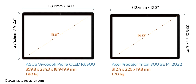 ThunderboltBoth Vivobook Pro 15 OLED K6500 and Predator Triton 300 SE 14 2022 are equipped with Thunderbolt 4 ports.