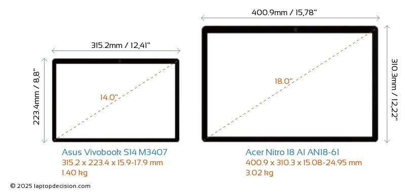 HDMIBoth Vivobook S14 M3407 and Nitro 18 AI AN18-61 feature an HDMI port (1x HDMI 2.1) for connecting to external monitors.