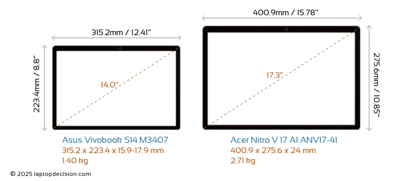 HDMIBoth Vivobook S14 M3407 and Nitro V 17 AI ANV17-41 feature an HDMI port (1x HDMI 2.1) for connecting to external monitors.