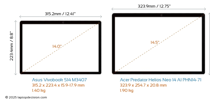 HDMIBoth Vivobook S14 M3407 and Predator Helios Neo 14 AI PHN14-71 feature an HDMI port (1x HDMI 2.1) for connecting to external monitors.