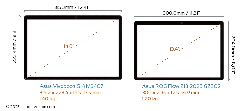 Audio JackBoth Vivobook S14 M3407 and ROG Flow Z13 2025 GZ302 are equipped with a 3.5mm Audio Jack, providing seamless connection to headphones and speakers.
