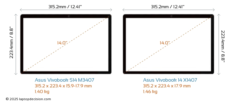 HDMIBoth Vivobook S14 M3407 and Vivobook 14 X1407 feature an HDMI port. Vivobook S14 M3407 offers 1x HDMI 2.1, while Vivobook 14 X1407 offers 1x HDMI 1.4.