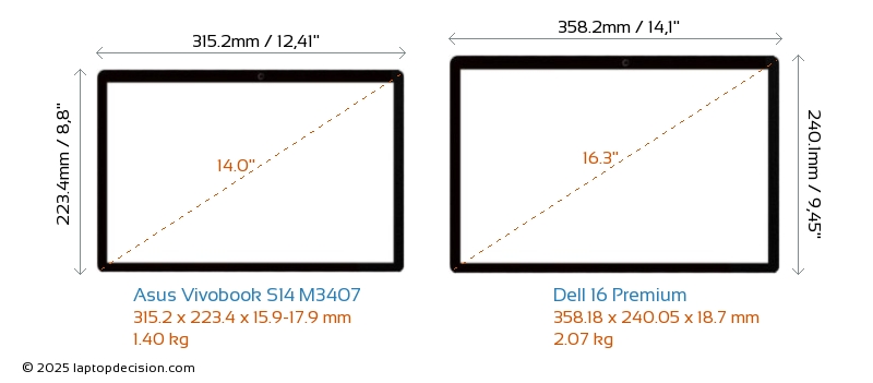 Wifi 16 Premium features a more advanced Wi-Fi standard v7, providing faster and more reliable wireless connections compared to Vivobook S14 M3407 (v6E).