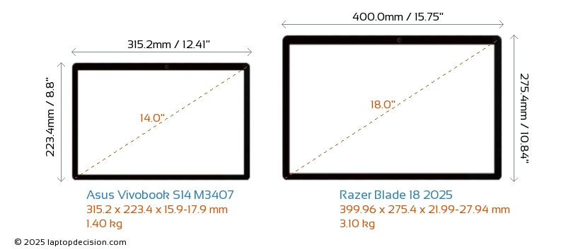 HDMIBoth Vivobook S14 M3407 and Blade 18 2025 feature an HDMI port (1x HDMI 2.1) for connecting to external monitors.