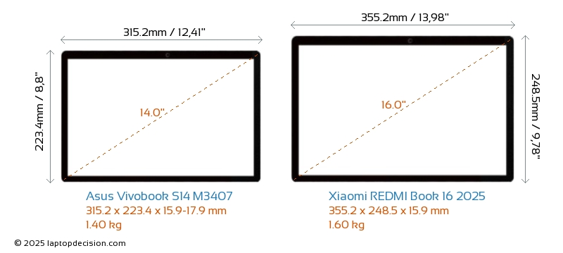 ThunderboltNeither Vivobook S14 M3407 nor REDMI Book 16 2025 has Thunderbolt port.