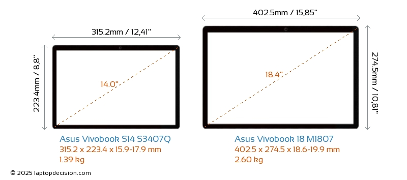 HDMIBoth Vivobook S14 S3407Q and Vivobook 18 M1807 feature an HDMI port (1x HDMI 2.1) for connecting to external monitors.