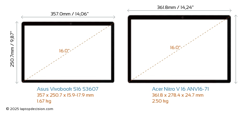 HDMIBoth Vivobook S16 S3607 and Nitro V 16 ANV16-71 feature an HDMI port (1x HDMI 2.1) for connecting to external monitors.
