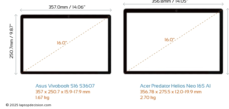 HDMIBoth Vivobook S16 S3607 and Predator Helios Neo 16S AI feature an HDMI port (1x HDMI 2.1) for connecting to external monitors.