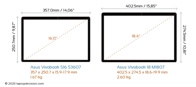 HDMIBoth Vivobook S16 S3607 and Vivobook 18 M1807 feature an HDMI port (1x HDMI 2.1) for connecting to external monitors.