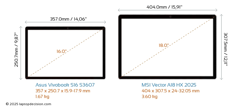 Wifi Vector A18 HX 2025 features a more advanced Wi-Fi standard v7, providing faster and more reliable wireless connections compared to Vivobook S16 S3607 (v6E).