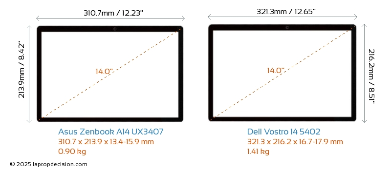 ThunderboltBoth Zenbook A14 UX3407 and Vostro 14 5402 are equipped with Thunderbolt 4 ports.