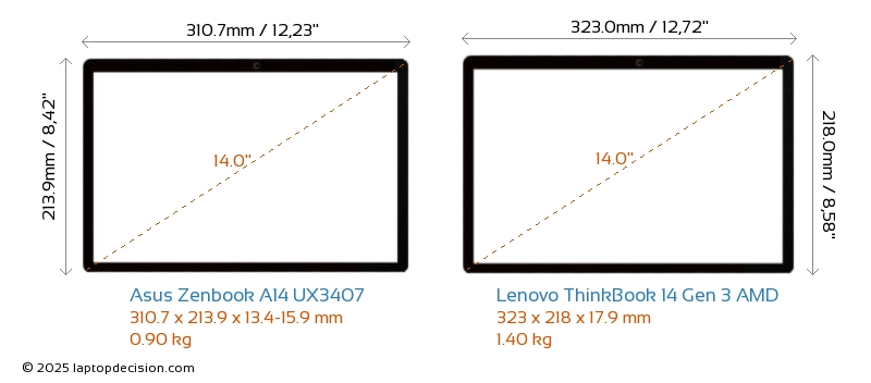 Audio JackBoth Zenbook A14 UX3407 and ThinkBook 14 Gen 3 AMD are equipped with a 3.5mm Audio Jack, providing seamless connection to headphones and speakers.