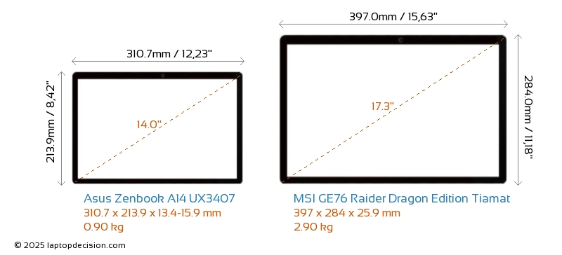 HDMIBoth Zenbook A14 UX3407 and GE76 Raider Dragon Edition Tiamat feature an HDMI port. Zenbook A14 UX3407 offers 1x HDMI 2.1, while GE76 Raider Dragon Edition Tiamat offers 1x HDMI 2.0.
