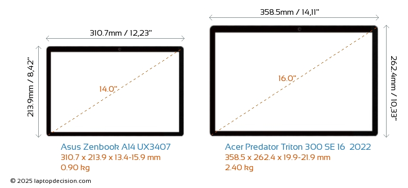 HDMIBoth Zenbook A14 UX3407 and Predator Triton 300 SE 16 2022 feature an HDMI port (1x HDMI 2.1) for connecting to external monitors.