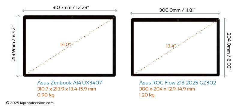 USBBoth Zenbook A14 UX3407 and ROG Flow Z13 2025 GZ302 feature 1x USB 3.2 USB-A ports.Both Zenbook A14 UX3407 and ROG Flow Z13 2025 GZ302 feature 2x USB 4.0 USB Type-C ports.