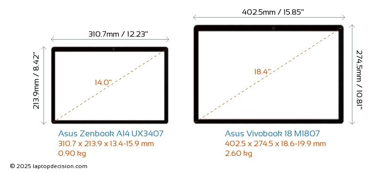 HDMIBoth Zenbook A14 UX3407 and Vivobook 18 M1807 feature an HDMI port (1x HDMI 2.1) for connecting to external monitors.