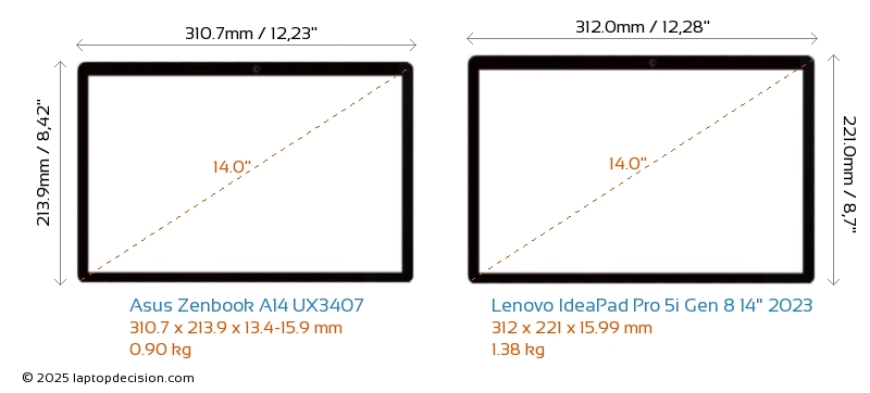 ThunderboltBoth Zenbook A14 UX3407 and IdeaPad Pro 5i Gen 8 14" 2023 are equipped with Thunderbolt 4 ports.