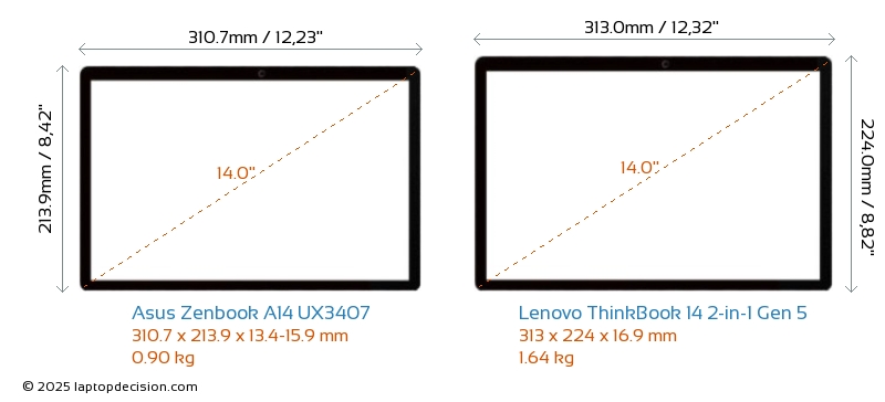 ThunderboltBoth Zenbook A14 UX3407 and ThinkBook 14 2-in-1 Gen 5 are equipped with Thunderbolt 4 ports.