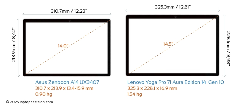 Audio JackBoth Zenbook A14 UX3407 and Yoga Pro 7i Aura Edition 14 Gen 10 are equipped with a 3.5mm Audio Jack, providing seamless connection to headphones and speakers.
