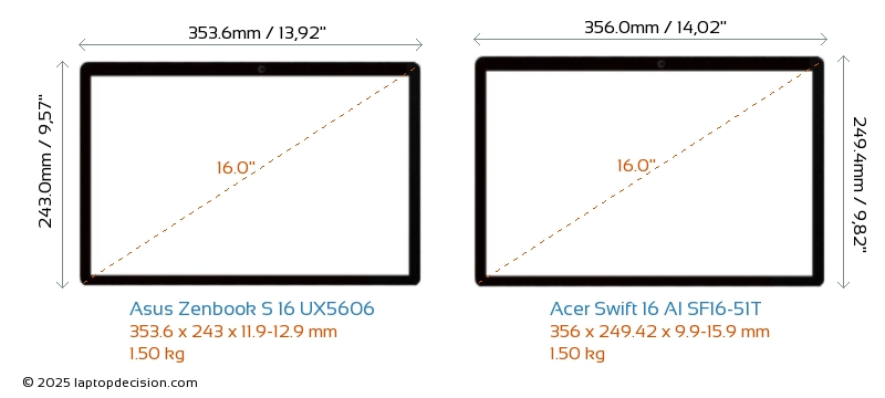 SD Card Reader Zenbook S 16 UX5606 is equipped with an SD Card Reader for easy access to memory cards. Swift 16 AI SF16-51T does not have an SD Card Reader.