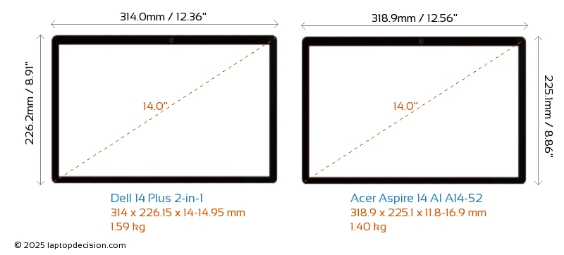 USBBoth 14 Plus 2-in-1 and Aspire 14 AI A14-52 have USB-A ports. 14 Plus 2-in-1 has 1x USB 3.2 USB-A ports, while Aspire 14 AI A14-52 has 2x USB 3.2 USB-A ports.Both 14 Plus 2-in-1 and Aspire 14 AI A14-52 feature 2x USB 4.0 USB Type-C ports.