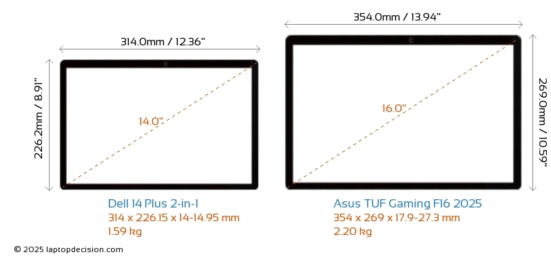 USBBoth 14 Plus 2-in-1 and TUF Gaming F16 2025 have USB-A ports. 14 Plus 2-in-1 has 1x USB 3.2 USB-A ports, while TUF Gaming F16 2025 has 3x USB 3.2 USB-A ports.Both 14 Plus 2-in-1 and TUF Gaming F16 2025 have USB Type-C ports. 14 Plus 2-in-1 has 2x USB 4.0 USB Type-C ports, while TUF Gaming F16 2025 has 2x USB 3.2 USB Type-C ports.