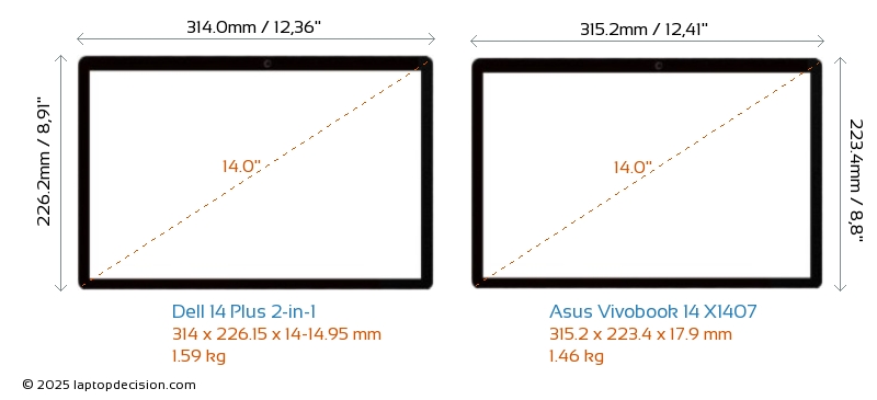 HDMIBoth 14 Plus 2-in-1 and Vivobook 14 X1407 feature an HDMI port. 14 Plus 2-in-1 offers 1x HDMI 2.1, while Vivobook 14 X1407 offers 1x HDMI 1.4.