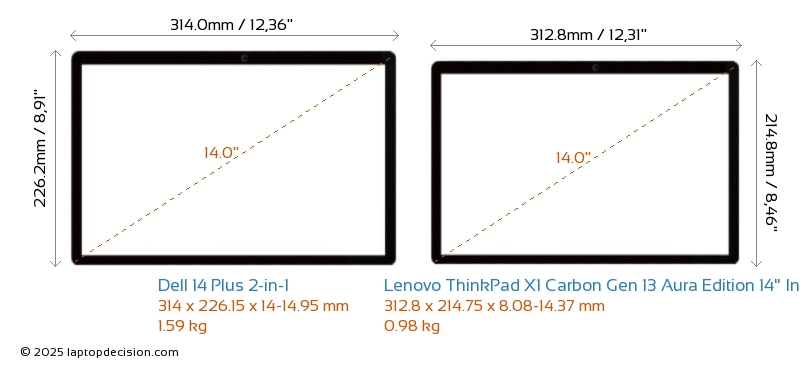 USBBoth 14 Plus 2-in-1 and ThinkPad X1 Carbon Gen 13 Aura Edition 14" Intel have USB-A ports. 14 Plus 2-in-1 has 1x USB 3.2 USB-A ports, while ThinkPad X1 Carbon Gen 13 Aura Edition 14" Intel has 2x USB 3.2 USB-A ports.Both 14 Plus 2-in-1 and ThinkPad X1 Carbon Gen 13 Aura Edition 14" Intel feature 2x USB 4.0 USB Type-C ports.