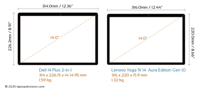 USBBoth 14 Plus 2-in-1 and Yoga 9i 14 Aura Edition Gen 10 feature 1x USB 3.2 USB-A ports.Both 14 Plus 2-in-1 and Yoga 9i 14 Aura Edition Gen 10 have USB Type-C ports. 14 Plus 2-in-1 has 2x USB 4.0 USB Type-C ports, while Yoga 9i 14 Aura Edition Gen 10 has 3x USB 4.0 USB Type-C ports.